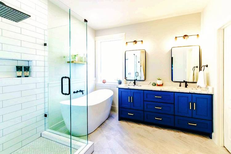 Prioritize the changes you’ll notice most: tile (floor and shower), vanity, fixtures, lighting, and mirror. Paint is the cheapest way to change the room’s entire character and should be done last after all construction dust settles. Use a mildew-resistant bathroom paint in a satin or semi-gloss finish for durability.